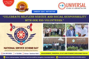 On 24th September 2025, the Universal School of Administration proudly celebrated National Service Scheme (NSS) Day under the IQAC initiative, reflecting its commitment to selfless service and social responsibility.